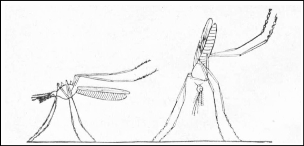 İsmail Hakkı, Ronald Ross’a atıf yaparak sivrisineklerin duruş şekillerinden zararlı veya zararsız olmalarının ayırt edilmesinin oldukça kolay olduğunu ifade etmiştir (Resim 3, Resim 4) (50).