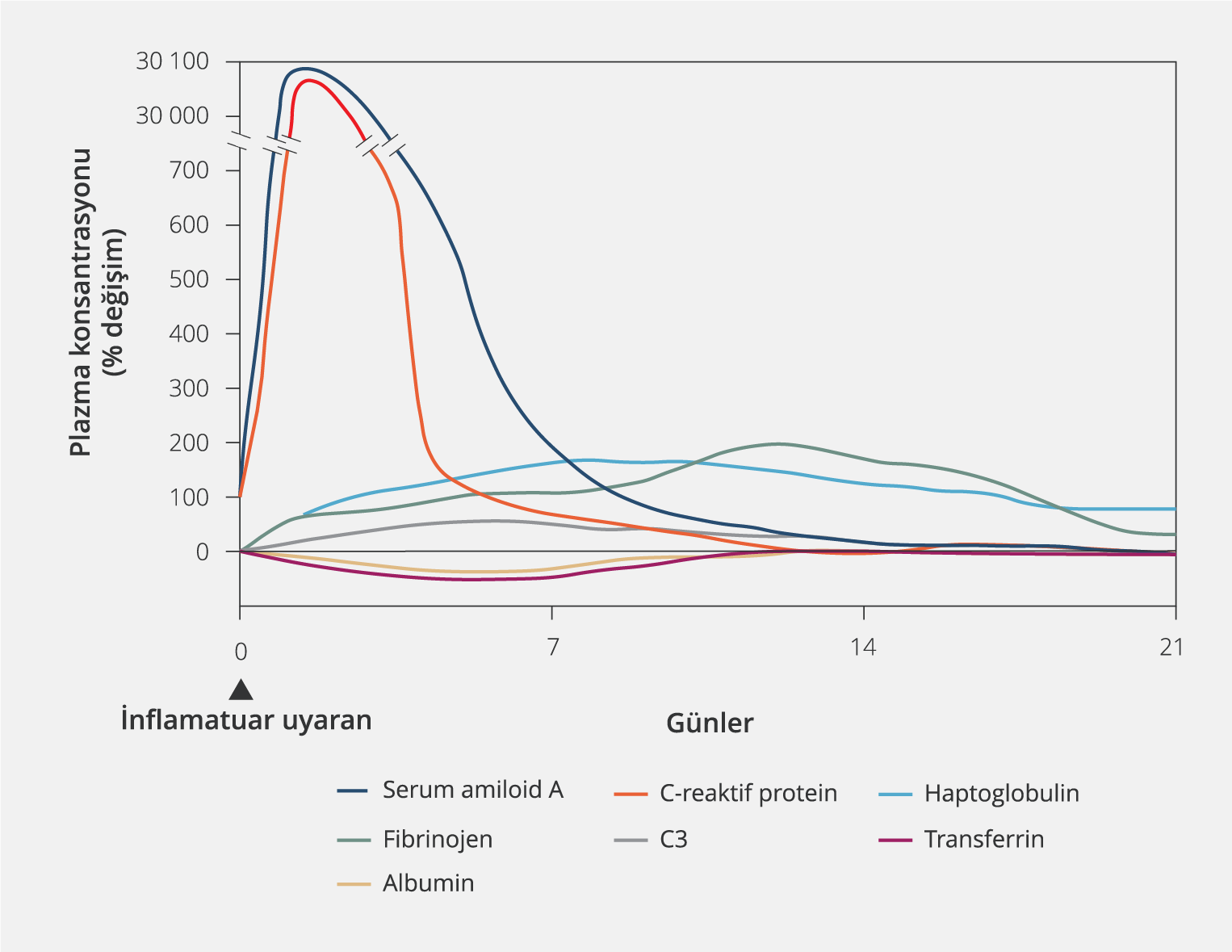 Şekil 1. Orta Dereceli İnflamatuar Uyaranla Plazma Akut Faz Proteinlerindeki Tipik Değişiklikler.*