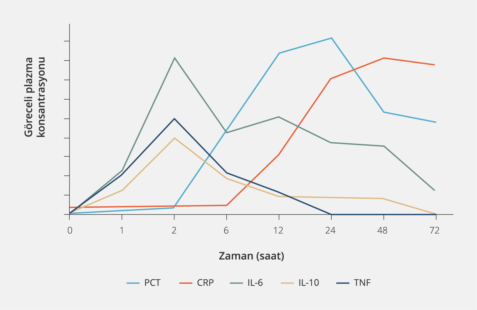 * PCT plazmada 2–6 saat içinde yükselmeye başlar ve 12. saatte pik düzeyine ulaşır, yarılanma ömrüyse yaklaşık 24 saattir (10).